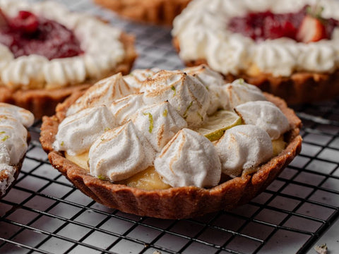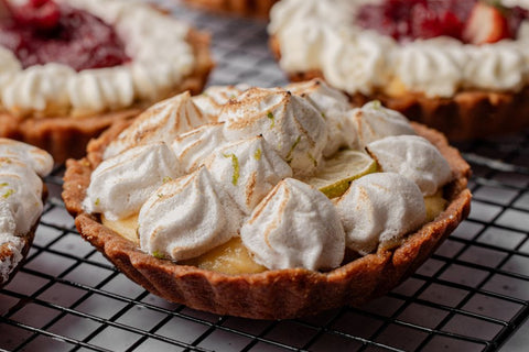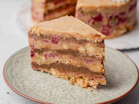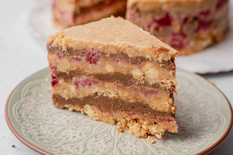 Bizcocho de chocolate, mermelada de guinda ácida, hojarascas con manjar, crema pastelera, bizcocho de vainilla, crema blanca y piña